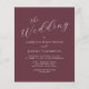 This simple modern wedding invitation features white text on a burgundy background. The words "The Wedding" appear in stylish calligraphy script. Add the couple's names in serif font and the remaining text in sans serif. The reverse side is solid burgundy.