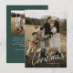 Budget Modern Calligraphy Merry Christmas 2 Photo Holiday Card features a fun and modern script on a full bleed photo, along with a second photo on the back and room for your message.