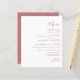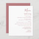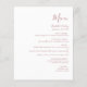 This simple modern wedding menu features dusty rose text on a white background. The word "Menu" appear in stylish handwriting calligraphy. Add the couple's name and wedding date in script and italics, along with menu detail in sans serif font. The reverse side is a matching shade of solid dusty rose.