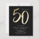 Modern minimalist 50th birthday party invitation features stylish faux gold foil number handwritten script 50 and your party details in classic serif font on black background colour, simple and elegant, great surprise adult milestone birthday invitation for men and women. The black background colour can be changed to any colour of your choice.