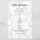 Modern White Marble Unique Memorial Funeral Program / Celebration Of Life Program. These sympathy funeral program feature a unique photo collage for 5 of your favourite photos, monogram initial and name, a heartfelt Quote "In Loving Memory....Quote " Those we love don't go away, they walk beside us everyday, unseen unheard, but always near. still loved still missed, and very dear. " ...Forever in our Hearts" on a modern white marble design. Personalise this celebration of life funeral program with your loved ones photos, name & dates, order of service, and thank you acknowledgement . ...COPYRIGHT © 2020 Judy Burrows, Black Dog Art - All Rights Reserved. Budget Modern Marble Memorial Funeral Program