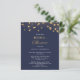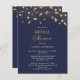 This Budget Modern Minimalist Navy Blue and Gold Bridal Shower Flyer - features golden script and shining golden polka dots on the trendy elegance Navy Blue background. The reverse side of the bridal invitation is Navy Blue with shining golden polka dots.