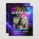 Trendy neon glow in the dark vibrant colourful 8th grade middle school BUDGET affordable graduation party invitation with your custom photo and bold typography. ++++++++++ PLEASE READ THIS BEFORE PURCHASING! This is a budget affordable card printed on a paper sheet (each sheet has one card). ++++ For the best rapport price-quality, our advice is to choose the Semi-Gloss paper type (it is thick enough to be used for stationery) ++++ If you need envelopes, choose the ENVELOPE OPTION. +++ Double-check all the information and spelling of your text because you will receive exactly what you see - no one else will check anything before printing. ++++ This card is designed for size 4.5" x 5.6". In the case you choose another size of the card and text goes outside page, everything needs to be fixed before adding the product to cart. Please ask Live Design Service for help.