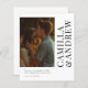 A modern photo wedding invitation with large typography and details on the front. The back has a QR code with additional details for guests making this a budget friendly all in one option.