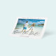 This is a modern budget wedding save the date card using a modern calligraphy style font along with a simple photo design, printed on a flyer.