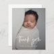 This budget friendly Modern Script Baby Photo Baptism thank you card features a beautiful full bleed horizontal photo and hand lettered thank you script and minimal editable text. Click the edit button to customise this design.