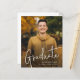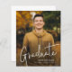 A Budget Modern Script Photo Graduation Invitation with handwritten font full bleed portrait photo on the front with name and graduation details. The back has a second photo with party details. Click the edit button to customise this design.