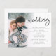 Budget Modern Script Photo QR Code Wedding Invitation. A budget price SMALLER 4.5” x 5.6” alternative. Available in a SEMI-GLOSS 110 lb CARD STOCK which is the default option (thicker for invitations), OR a SATIN FINISH 80 lb THINNER PAPER STOCK (ideal for enclosures). Add your QR code to your wedding website on the back making this a convenient option for your guests to RSVP and see all the details without the need for separate RSVP and details cards. You can create QR codes for free online. Simply search “QR code creator” and lots of options come up to create for free. A minimalist fun design to let everyone know your happy news. Simply replace the sample photo with your own favourite. A gradient overlay layer is on top of your photo so it fades out as it reaches the centre with the text partially overlaid on top. Wedding is in a modern set script and easily personalise the rest of the text.