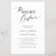Elegant simple minimal clean black and white "the night before" BUDGET rehearsal dinner invitation PAPER FLYER (advertising type of paper) template featuring a classy stylish chic trendy calligraphy script. . ++++++++++++++ PLEASE READ THIS BEFORE PURCHASING! This is a budget affordable card printed on a FLYER. ++++ Please note that BUDGET PAPER IS THIN (suitable for folded mailings) - You can upgrade to have this card printed on cardstock ++++ ENVELOPES NOT INCLUDED. +++ Double-check all the information and spelling of your text because you will receive exactly what you see - no one else will check anything before printing. ++++ This card is designed for size 5.5" x 8.5". In the case you choose another size of the card and text goes outside page, everything needs to be fixed before adding the product to cart. ++++++++++++ Easy to personalise with your details! The invitation is suitable for elegant wedding rehearsal celebrations