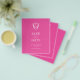 Announce your engagement with this modern budget save the date sheet. They feature a mix of classic and script typography in white over a solid fuchsia pink background. Enter the bride and groom's monogram in the centre of a crest. All the colours can be customised to suite your wedding colour scheme. Use the template fields to personalise with your name and wedding date. Mix and match with many of my designs to create your customised wedding theme. A minimal yet elegant design for wedding save the date on a tight budget. To see the matching wedding stationery suite visit www.zazzle.com/dotellabelle
