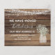 Budget Rustic Farmhouse Wood, String Light and Jar of Baby's Breath Flowers We have Moved New Home or New Address cards - includes beautiful and elegant script typography with modern floral for the special New Home or New Address celebration.