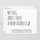 Personalise names with the dog, and your new address. These budget dog moving announcements postcards need to be mailed as oversized postcards so may incur standard postage fees but they don't need an envelope or a return address label. This dog new address announcement card is a must for all dog moms, dog dads, & dog lovers!