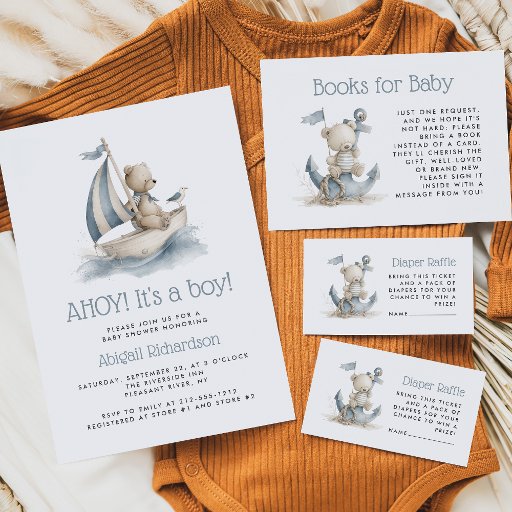 Cute Nautical Teddy Bear Boys Baby ShowerDesigned by Akhates Designs