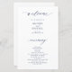 Modern simple minimalist typography trendy clean white ceremony and party BUDGET affordable wedding program template featuring a chic trendy dark navy blue calligraphy script. ++++++++++++ Easy to personalise with your custom text on both sides!