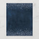 Budget Navy Blue Glitter Girly 21st Party. A budget price SMALLER 4.5” x 5.6” alternative. Available in a SEMI GLOSS 110 lb CARD STOCK which is the default option (recommended for invitations, similar to the thickness of a postcard), OR a SATIN FINISH 80 lb THINNER PAPER STOCK (ideal for enclosures). A border of navy blue glitter is at the top on each side on a grunge navy background, and Twenty first is in a handwriting style script. Easily personalise the text to your own details.