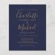 Budget Navy Blue Gold Script Photo Wedding Invite