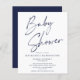 Budget Navy Blue Script Boy Baby Shower Invitation