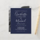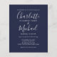 Featuring your photo and signature style names. This elegant budget navy blue wedding invitation can be personalised with your wedding details in chic lettering. Designed by Thisisnotme©
