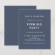 Simple Dusty Navy Blue Blue Wedding Evening Party Invite. A budget price SMALLER 4.5” x 5.6” alternative. Available in a SEMI GLOSS 110 lb CARD STOCK which is the default option (recommended for invitations), OR a SATIN FINISH 80 lb THINNER PAPER STOCK (ideal for enclosures). Easy to personalise the text to your details and change colours of typography and background on each side if you wish can be changed to any or your choice via the customise further option.