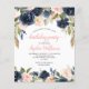 Budget Navy & Pink Roses Birthday Party Invitation