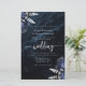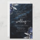 Budget Navy Silver Floral QR Code Wedding Invite
