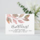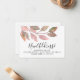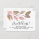 This budget moving announcement mini card is decorated with minimalist watercolor greenery in shades of pink and stylish script typography.