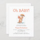 This cute baby shower invitation features a watercolor axolotl holding an umbrella in the rain, below the words "Oh BABY!" in orange hand printing font. Personalize the text with the name of the mom-to-be in orange and the details in charcoal gray sans serif font.