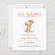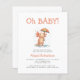This cute baby shower invitation features a watercolor axolotl holding an umbrella in the rain, below the words "Oh BABY!" in orange hand printing font. Personalize the text with the name of the mom-to-be in orange and the details in charcoal gray sans serif font. The reverse side provides space for diaper raffle, books for baby, and registry details, along with a convenient QR code guests can scan to visit the registry.