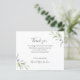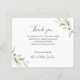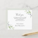 Delicate rustic green leaves painted in delicate palette of watercolor greens and greys for this elegant and classic wedding thank you card. Use the template to add your details. In the same design you can find Invitation cards, information cards, menu cards, table numbers, table plan, place cards, welcome sign and more! So you can be sure that the theme will stay consistent from beginning to end.