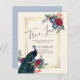 Beautiful Peacock with Teal and blue, burgundy flowers, sage green leaves feature on this fall, autumn, winter wedding items. Part of a larger collection that includes budget wedding invitations, save the dates, RSVPs, thank you photo cards, bridal and wedding party gifts, and more. For a detailed FREE winter wedding planning, guide visit weddingdesignchic.com.
