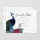 BUDGET Peacock Blue Burgundy Winter Fall Wedding Postcard
