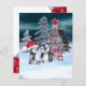 BUDGET Penguin Christmas Tree Scene - a very cute Holiday Card from Ricaso featuring two little penguins in front of a Christmas tree adorned with red baubles and a poinsettia flower in a forest with snow