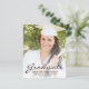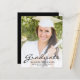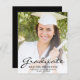 Modern graduation announcement featuring a custom vertical photo. The word "Graduate" appears in black script, with the graduate's name, school and year of graduation below in sans serif font. Easily replace the sample image with your own graduate's photo. A white gradient screen helps ensure the text pops. The reverse is solid black. Ideal for high school or college graduation.