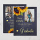 Rustic country style 4 PHOTO collage graduation party stylish invitation template on dark midnight navy blue chalkboard background featuring big yellow gold sunflowers bouquets. ++++++++++++++++++ Personalize with your text and images on both sides! ++++++++++ The invitation is suitable for outdoor garden / backyard rustic country graduation parties. ++++++++++++++++++++++ PLEASE READ THIS BEFORE PURCHASING! This is a budget affordable wedding card printed on a paper sheet (each sheet has one card). ++++ For the best rapport price quality, our advice is to choose the Semi-Gloss paper type (it is thick enough to be used for stationery) ++++ If you need envelopes, choose the ENVELOPE OPTION. +++ Double-check all the information and spelling of your text because you will receive exactly what you see - no one else will check anything before printing. ++++ This card is designed for size 4.5" x 5.6". In the case you choose another size of the card and text goes outside page, everything needs to be fixed before adding the product to cart. Please ask Live Design Service for help.