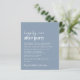 Minimal modern and budget-friendly dusty blue wedding/elopement announcement and reception invitation. The front features "Happily Ever After Party" in a contemporary white script and bold trendy white typography. Personalise your message and invitation in more detail and add your names in a signature-like script. The reverse side features your wedding photo, first names and wedding date.