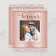 Engagement announcement cards are perfect for when you don’t have a wedding date set, but you can’t wait to share the good news with your friends and family! This elegant design on a cheaper paper option, features rose gold background, glitter damask frame on the top and bottom, and trendy script calligraphy “Forever” text. There is a message on the back, which you can delete if you don’t need it, or change the wording to make it a save the date card or engagement party invitation.