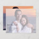 Beautiful design at a budget price! This pretty script with photo overlay wedding save the date is both modern and stylish. White overlay on the photo with your details on the front and full colour photo on the back.