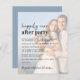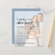 Modern dusty blue budget-friendly wedding announcement and reception invitation featuring your photo overlayed with "Happily Ever After Party" in a blend of a contemporary script and bold lettering. Personalise your message and invitation and add your names in a signature-like script. On the back, your names and wedding and reception dates are in simple white lettering and joined together by a heart (if your wedding and reception dates are different, keep your first names on the top line and your two dates separated by the heart on a second line).