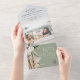Budget modern sage green rustic pampas eucalyptus photo wedding all in one QR code invite, reply card with space for qr code and website information.