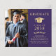 Elegant budget-friendly purple college graduation announcement featuring a gold grad cap, a photo of the graduate, and their name in classic gold serif typography. Add their school, major, honours or future plans. This budget semi-gloss paper is similar in weight to photo paper -- a larger 5x7 traditional card stock version is also available (message us for the link).