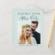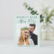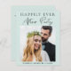 Budget-friendly mint green elopement or private wedding announcement and reception or celebration party invitation. The front features your photo, "Happily Ever After Party" in a mix of simple typography and a chic modern script and your first names and wedding date. On the reverse side, personalise your message and reception details, input your wedding website address to create a QR code for guests to scan for more information and to RSVP online, and add your names in a signature-like script.