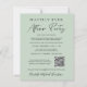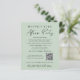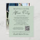 Budget-friendly sage green elopement announcement and wedding reception or celebration party invitation. The front features "Happily Ever After Party" in simple typography and a modern script. Personalise your announcement and invitation and add your names in a signature-like script. Input the URL address of your wedding website to create a QR code for guests to scan for all the details an to RSVP online. The reverse side features your favourite wedding photo, first names and wedding date.