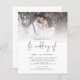 Budget Photo QR Code Script Wedding Invitation A budget priced smaller 4.5 x 5.6” 110lbs semi-gloss, similar in thickness to a postcard. There is ONE per sheet. Easily personalise the words to your own details. With a QR code to your wedding website on the back so your guests can RSVP and see all the details online without the need for separate enclosures. Your QR code will be automatically generated to update the sample code in the design, when you simply change the sample URL in the template with your own wedding website URL. An informal set typography in black for the main heading the Wedding Of complementing the rest of the text which you can easily personalise. Replace the sample photo with your own favourite.