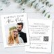 Budget-friendly elopement or small wedding announcement and reception or celebration party invitation. The front features your photo and "Happily Ever After Party" in a mix of simple typography and a chic modern script. Under your photo, add your first names and wedding date. On the reverse, personalise your message and reception details, input your wedding website address to create a QR code for your guests to scan for more information and to RSVP online, and add your names in a signature-like script.