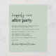 Chic budget-friendly sage green wedding reception invitation with "Happily Ever After Party" in a blend of a contemporary script and minimal modern lettering, your invitation, and your names in a signature-like script. On the back, add your photo and input your wedding website address to create a QR code for your guests to scan to RSVP online and obtain additional wedding details. This budget semi-gloss paper is similar in weight to photo paper. A larger 5x7 traditional card stock version is also available (message us for the link).