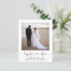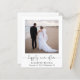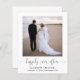 Simple and chic budget-friendly elopement or small wedding announcement and post-wedding reception or party invitation. The front features your photo, "happily ever after" in a stylish script with swashes and your first names, wedding date and location. On the reverse side, personalise your wedding announcement and reception or party invitation, input your wedding website URL address to create a QR code for guests to scan to see your wedding photos, all the details and to RSVP online and sign your married names in a signature-like script.