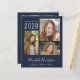 Budget-friendly dark blue graduation announcement and party invitation with a 3 picture photo collage, "Graduate" in a stylish white script, and the grad's name, class year and school or university in modern white typography. On the reverse, add an additional picture and your graduation party details.