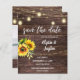 Save money on formal invitations with this smaller invitation that has an option for envelopes. Get your guests ready for the amazing wedding with your Sunflower, Photo, Wood, & String Lights Save the Dates.