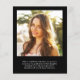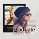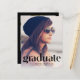 A budget friendly option to announce your graduate's achievements, this stylish graduation announcement features your grad's photo, "Graduate" written in a trendy type typography with unique lines and his or her name, school and class year. On the reverse side, add an additional photo and personalised message in simple white typography on a black background..