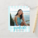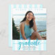 Be proud, rejoice and announce to the world that your favourite grad has reached their milestone with this stunning, simple, modern, personalised budget announcement invite. Sparkly, elegant, faux turquoise blue glitter calligraphy script, grey sans serif typography and a photo of your choice overlay a light turquoise blue and white striped background. Personalise the custom text with your graduate’s name, school name, class year, and graduation date. On the back, add your personal note, next school they’re attending, party information, etc. Guaranteed to add stylish fun to their special occasion!